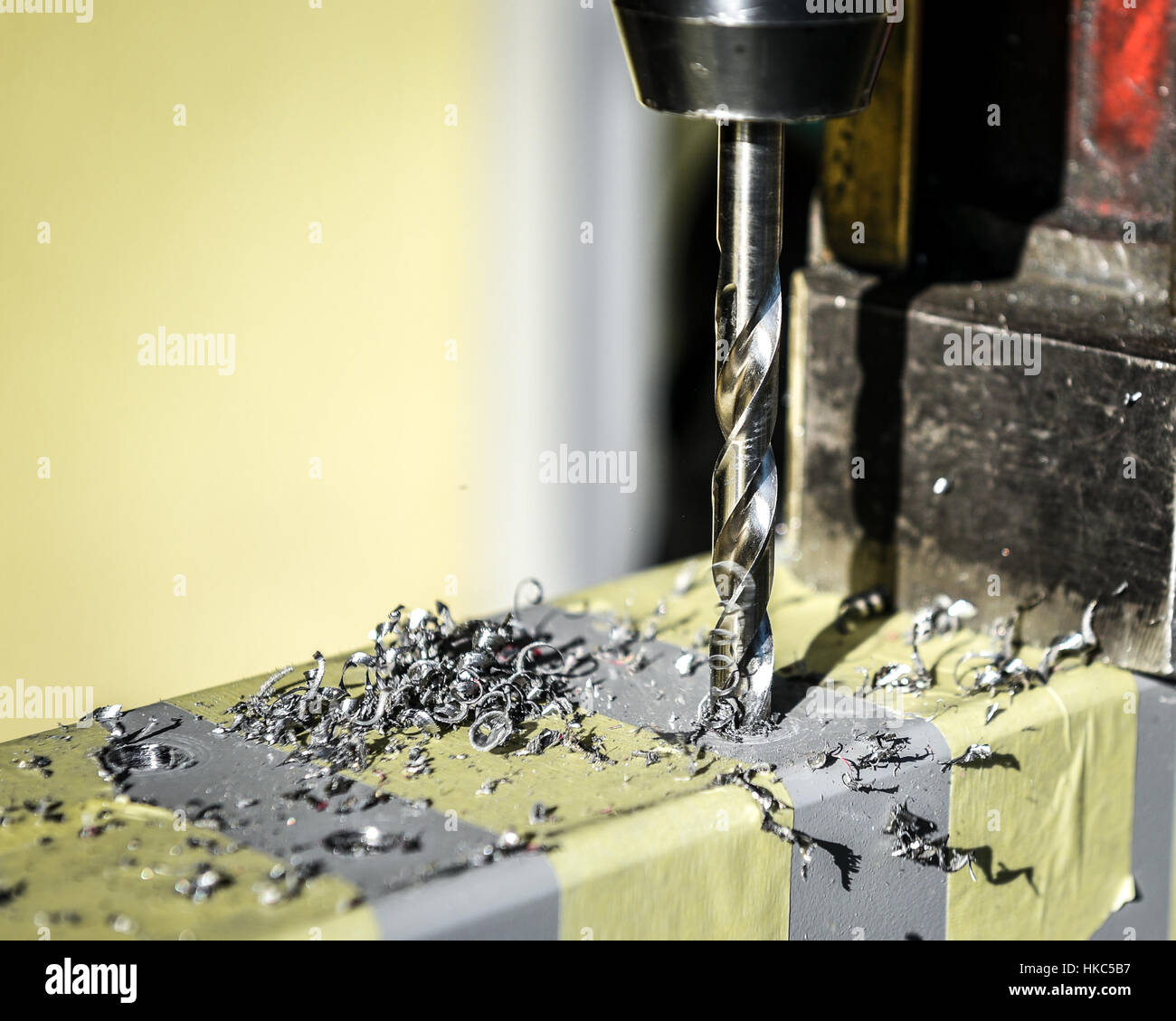 Electric Drilling Machine Closeup In Metal Workshop With Manual