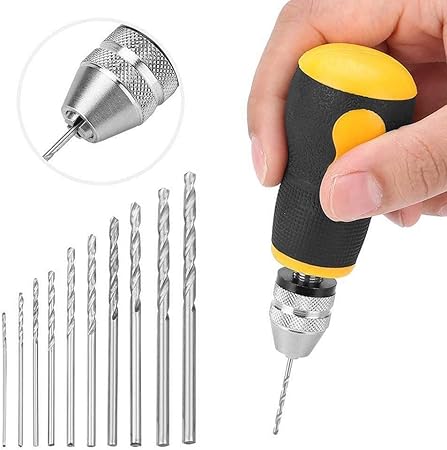 Caidu 11pc Spiral Hand Drill Semi Automatic Pin Vise Keyless Chuck