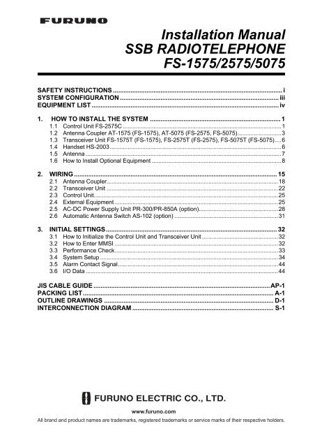 Fs1575 2575 5075 Installation Manual E1 6 15 2012 Furuno Usa