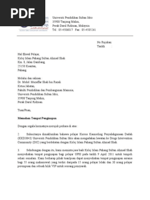 Contoh Surat Memohon Pengecualian Kuliah 2 Docx Anas Bin Mohd Hanafiah D20171077586 Fakulti Bahasa Dan Komunikasi Universiti Pendidikan Sultan Idris Course Hero