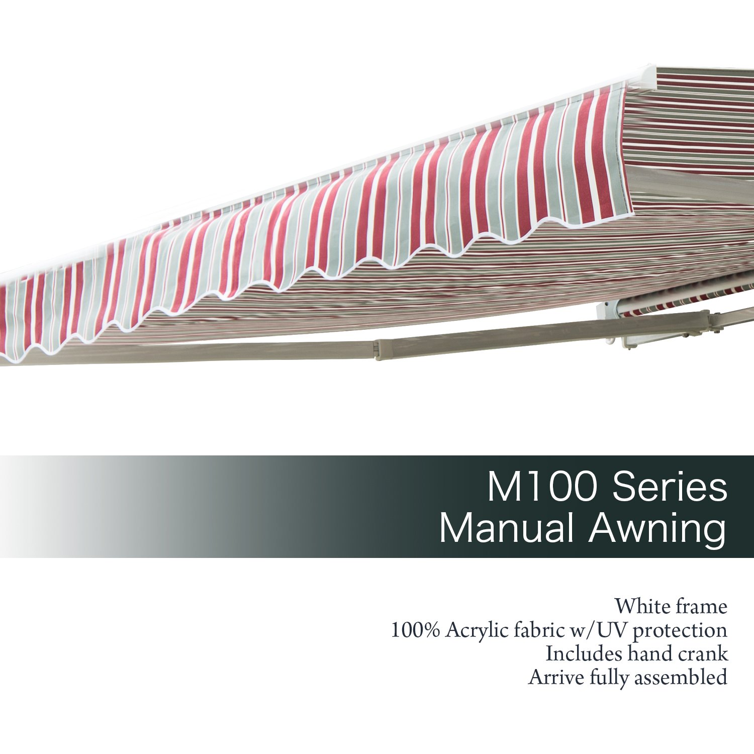 Red Grey Stripes Diensweek 12x8 Patio Awning Retractable Manual
