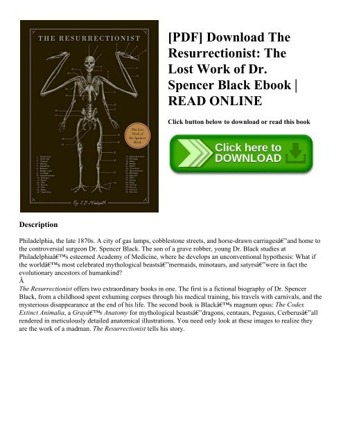 The Resurrectionist The Lost Work Of Dr Spencer Black Pdf Download - Ebook And Manual Free
